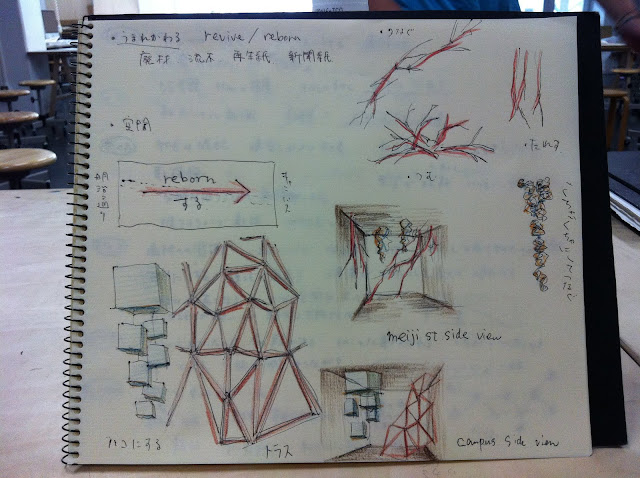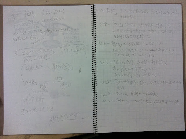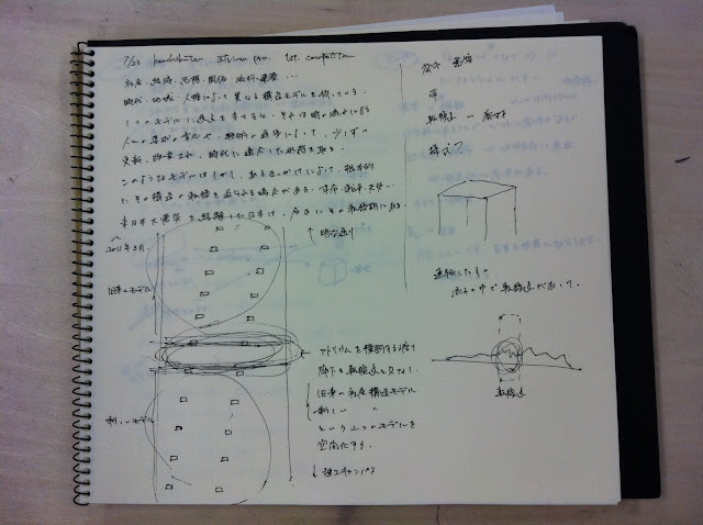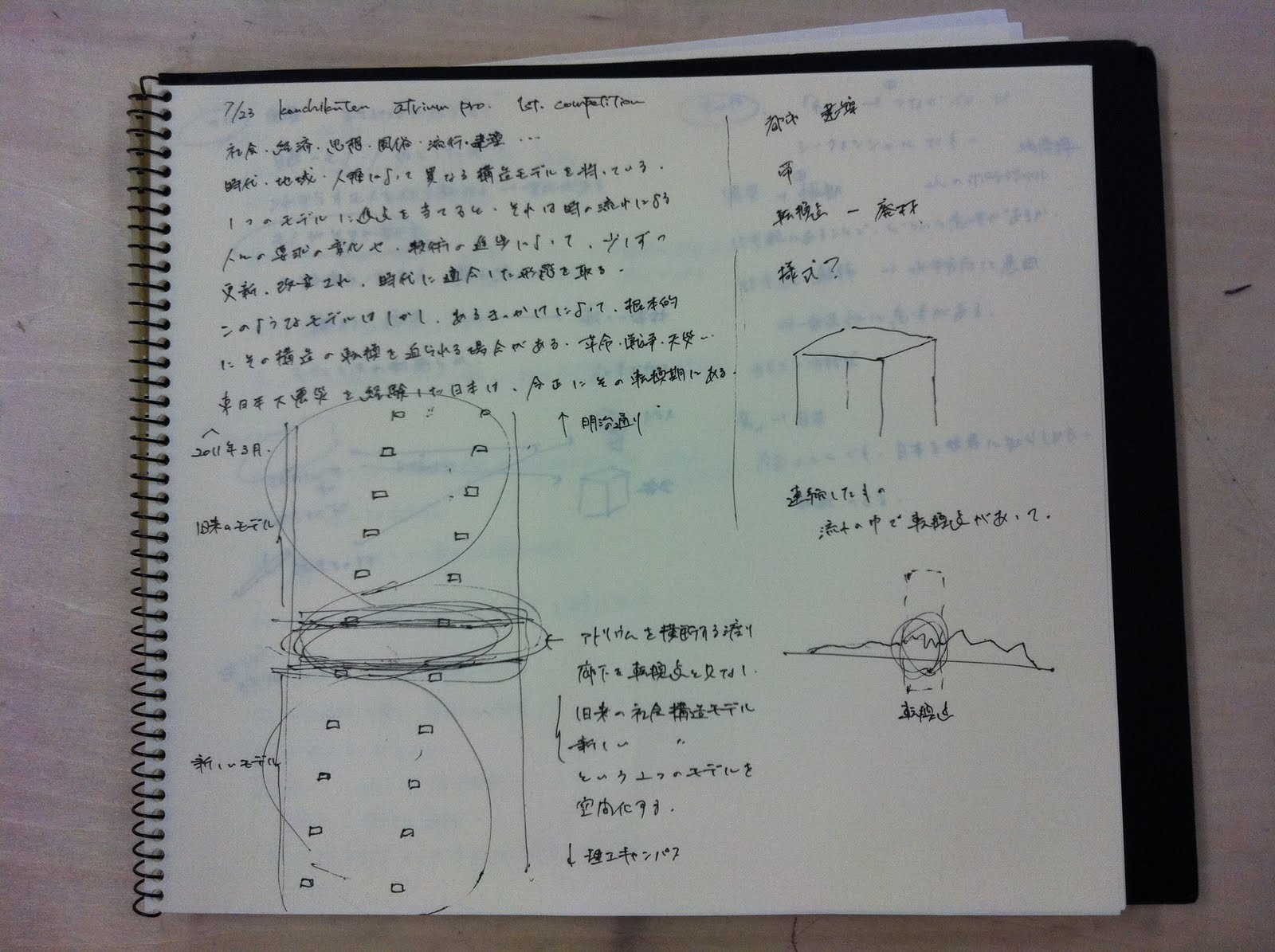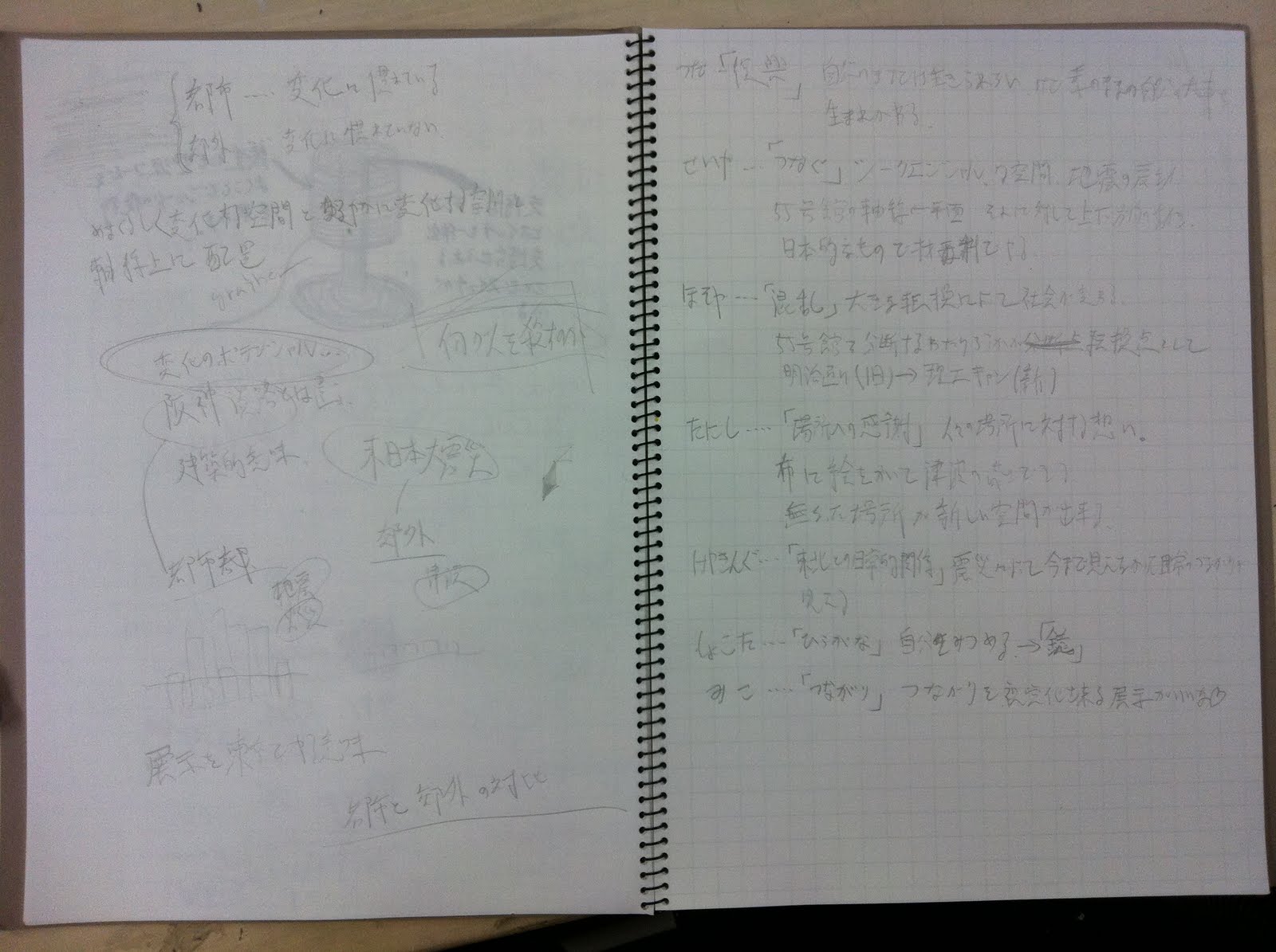 東日本大震災きっかけに、どんなことを考えたか。それを空間化してください。建築展テーマ「わ」も忘れずに。